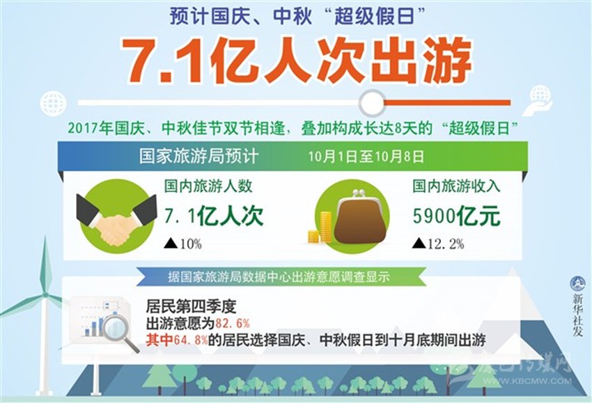 今年國慶、中秋佳節(jié)雙節(jié)相逢,疊加構(gòu)成長達8天的“超級假日”。國家旅游局預(yù)計,10月1日至8日國內(nèi)旅游人數(shù)將達到7.1億人次,國內(nèi)旅游收入將達到5900億元,較去年同期分別增長10%和12.2%。