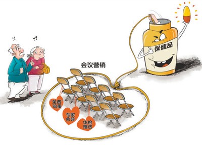 “免費贈禮”作餌是保健品銷售“連環(huán)計”的開端。不少保健品銷售會利用老年人愛節(jié)約的特點,用雞蛋、掛面等價格低廉的“免費禮物”吸引老年人,為老年人組織活動,以此搜集他們的信息,建立初步信任關(guān)系?!敖】祵觥毕茨X則是抓住老年人體弱多病、關(guān)注健康的“痛點”,通過講座、會議等形式組織專場活動,美其名曰是為老年人宣講健康知識、普及養(yǎng)生理念等,實際上最終目標是推銷保健品。