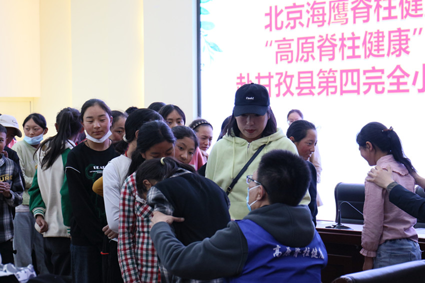 日前,北京海鷹脊柱健康公益基金會“高原脊柱健康”醫(yī)療專家團隊到甘孜縣小學,為孩子們逐個進行脊柱篩查和診斷,其中有31名輕微脊柱側(cè)彎的學生、5名重度脊椎側(cè)彎患者納入赴京手術(shù)名單。圖為醫(yī)護人員正在篩查。 甘宣 攝影報道