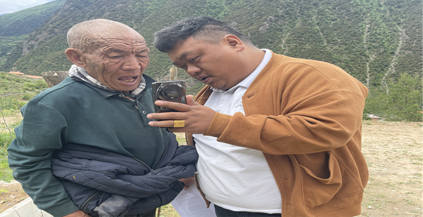 本網(wǎng)訊 “阿克,德姆額應(yīng),今天來看看您,順便幫您做養(yǎng)老保險認證!”活動中,白玉縣熱加鄉(xiāng)勒沙村第一書記一邊拿著手機,耐心幫老人完成養(yǎng)老保險資格認證,一邊與老人親切交談,詢問老人近期身體狀況,叮囑老人保重身體,有需要幫助及時電話聯(lián)系。