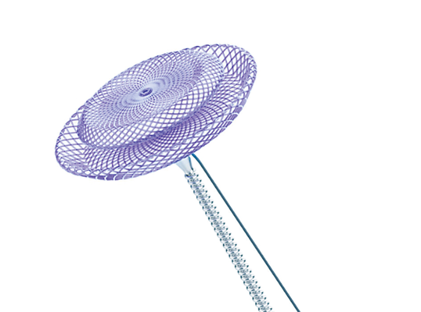 經(jīng)過反反復(fù)復(fù)的嘗試,最終把封堵器做成了雙盤內(nèi)凹結(jié)構(gòu),并通過高溫?zé)岫ㄐ图疤厥狻版i扣”設(shè)計等,實現(xiàn)“非形狀記憶的材料達(dá)到形狀記憶的功能”。