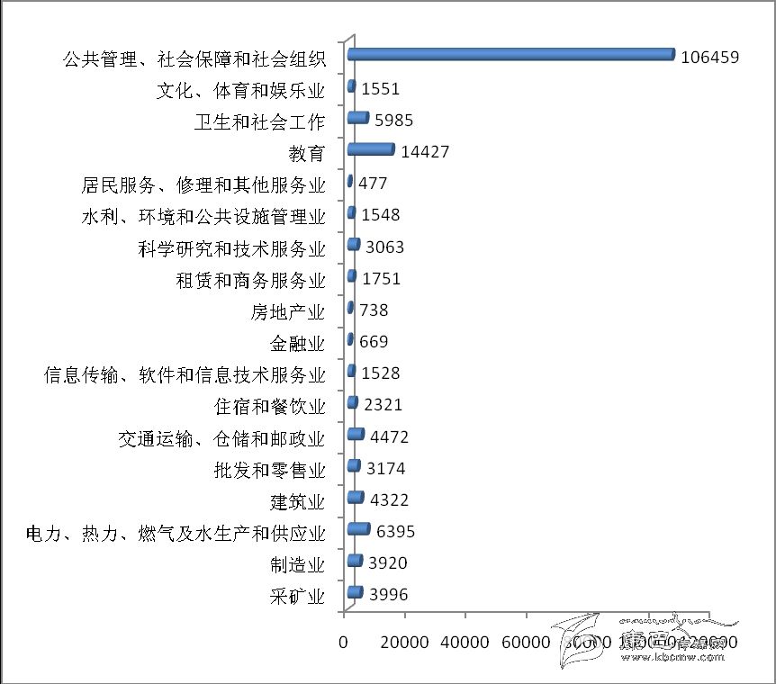 2013年末,在第二產(chǎn)業(yè)和第三產(chǎn)業(yè)法人單位中,位居前三位的行業(yè)是:公共管理、社會(huì)保障和社會(huì)組織 5626 個(gè),占62.87 %;教育723個(gè),占8.08 %;科學(xué)研究和技術(shù)服務(wù)業(yè)717個(gè),占8.01 %。在有證照個(gè)體經(jīng)營(yíng)戶(hù)中,位居前三位的行業(yè)是:批發(fā)和零售業(yè)8349個(gè),占41.69 %;交通運(yùn)輸、倉(cāng)儲(chǔ)和郵政業(yè)6462個(gè),占32.27 %;住宿和餐飲業(yè)3102個(gè),占 15.49 %(詳見(jiàn)表1-2)。