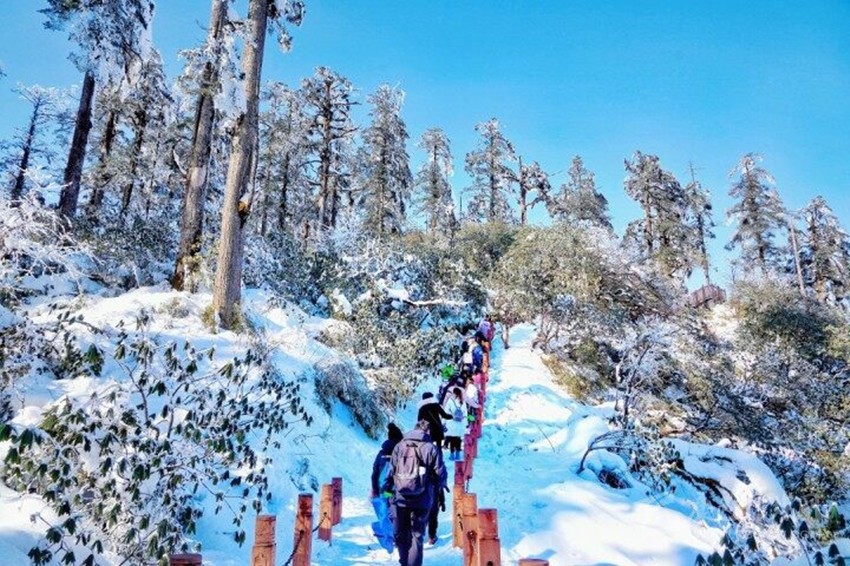 ? 游客徒步瓦屋山。丨栗慧娟 攝
